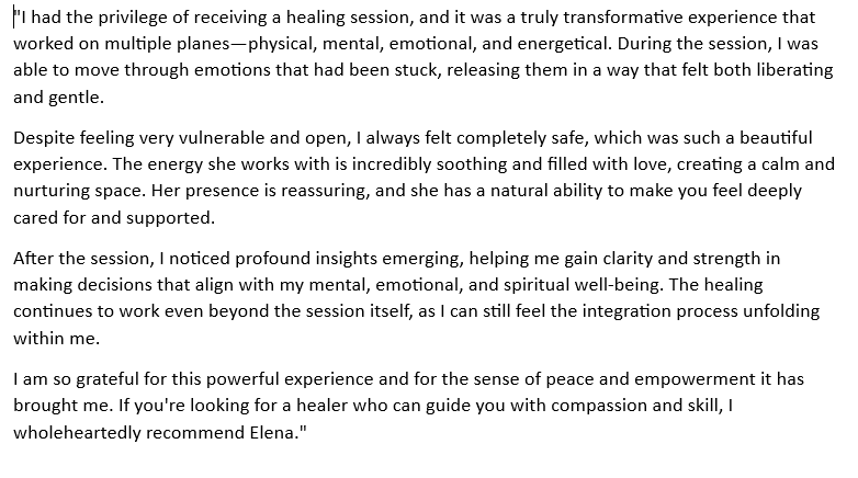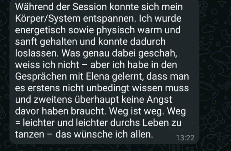 In einer Session können sich Blockaden lösen, dein System findet zurück in die Balance – und du spürst mehr Klarheit, inneren Frieden und Verbindung. Dafür musst du nichts wissen, nichts tun, nichts verstehen. Die Energie zeigt, was gehen darf. Und du bekommst genau das, was du jetzt gerade brauchst.